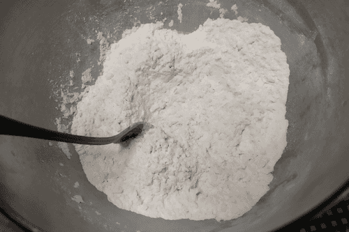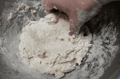 Start kneading the dough immediately. While it's hot — with a fork, then with hands.