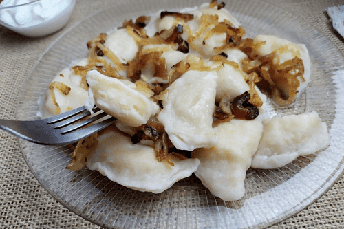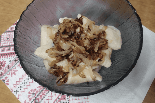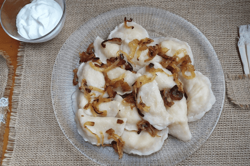 Dumplings with potatoes are a true embodiment of home comfort and the taste of Russian cuisine. The history of this dish goes back centuries, finding kinship in Slavic and Eastern European traditions. The delicate dough, made with boiling water and vegetable oil, gives the dumplings special elasticity and softness. The filling of fragrant mashed potatoes enriched with butter and spices provides a rich, slightly sweet flavor to the dish. Additional depth is added by fried onions that contribute a golden caramel note. Dumplings are served hot, often with thick sour cream that highlights their velvety texture. This dish is perfect for cozy family dinners and becomes a symbol of hospitality and warm gatherings.