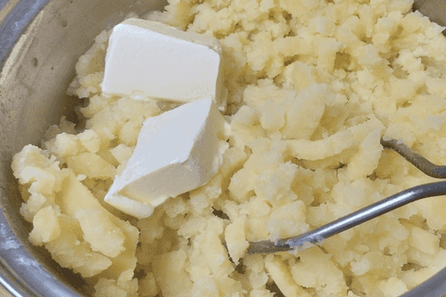 Boil the potatoes in salted water, adding bay leaf and peppercorns, until cooked.