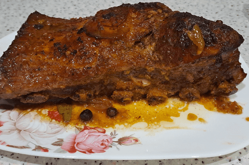 Baked pork rib with honey, mustard and soy sauce