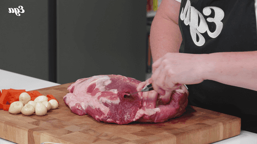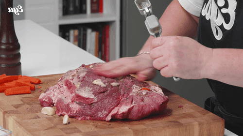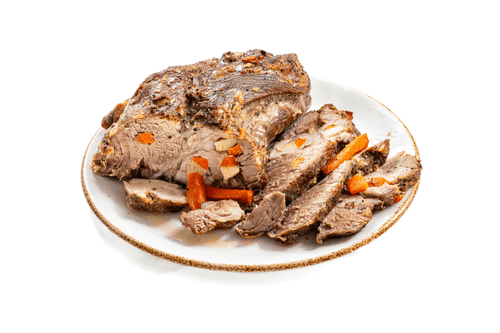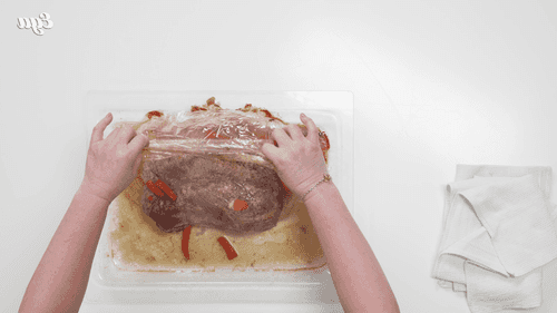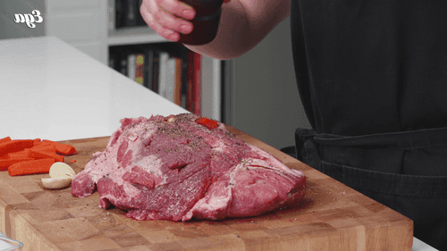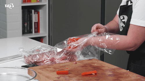Place the meat in a baking bag, add the chopped carrot if available, release the air from the bag, and tie it. At this stage, you can stop and put the meat in the fridge - it can be stored like this for up to 2 days.