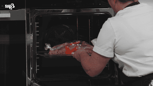 Then increase the temperature to 220 degrees, open the sleeve, and return to the oven for another 15 minutes to brown the meat.