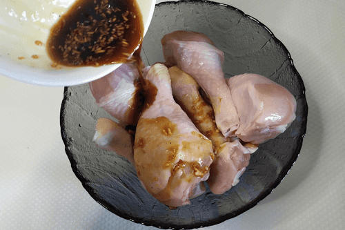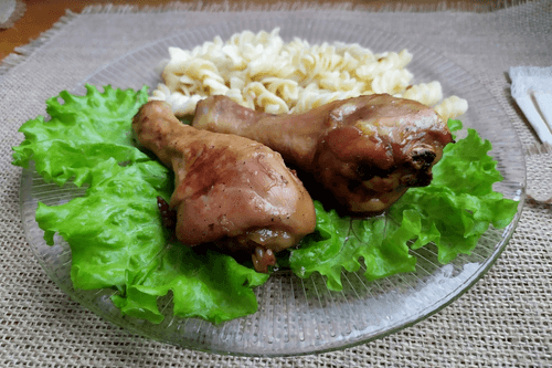 Chicken legs in soy-honey marinade are an exquisite combination of tender chicken meat with deep Eastern notes of soy sauce and a sweet caramelized coating of honey. This recipe is inspired by Asian cuisine but is well adapted for the European table. The marinade penetrates the meat, making it juicy and rich in flavor, while baking creates an appetizing golden crust. Garlic adds spiciness, and ground pepper gives a slight heat. Serving with pasta and fresh salad leaves balances the dish by combining sweetness, saltiness, and tender texture. It's a great option for a cozy family dinner or festive table that delights with its rich taste and simplicity of preparation.