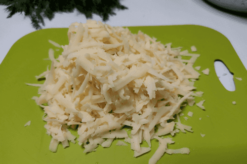 Grate the cheese on a coarse grater.