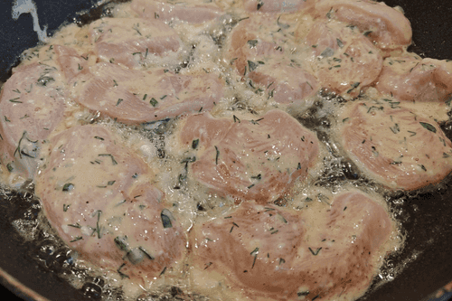 Fry the strips on a well-heated pan with sunflower oil on both sides until cooked.