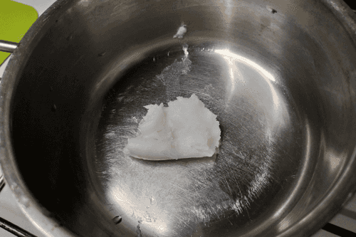 Melt coconut oil (can be replaced with butter) in a saucepan or skillet.
