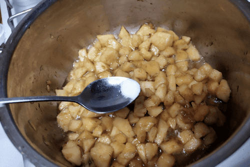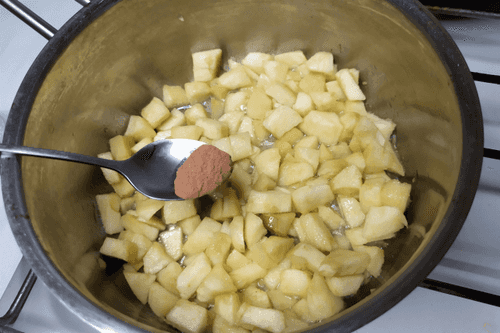 Put the chopped apples in a saucepan and simmer, stirring, over low heat.