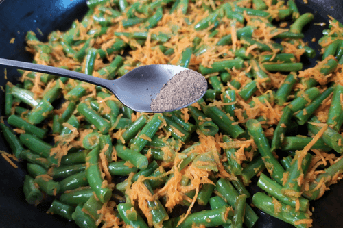 Add carrot to the beans, mix.