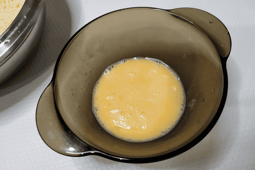 Whisk the egg.