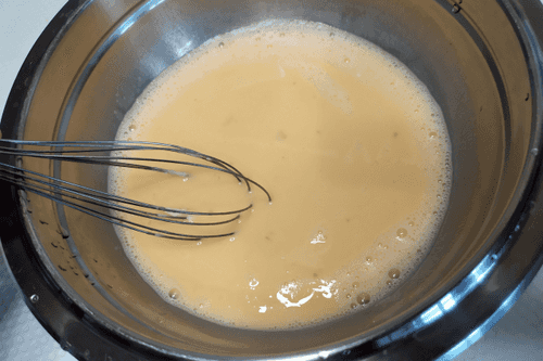 Whisk the milk and eggs until smooth.