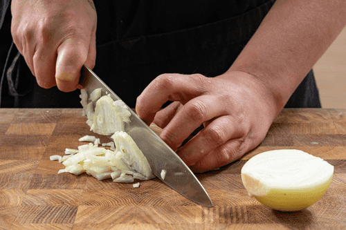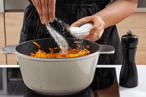 In a thick-walled pot, heat vegetable oil and sauté the onion until translucent.