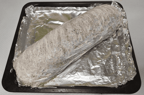 Place the roll on a baking sheet and spread a small amount of mayonnaise on top. Bake in the oven at 180 degrees for one hour until golden brown.