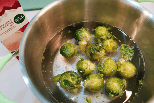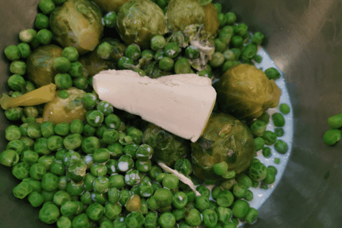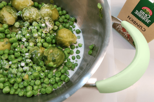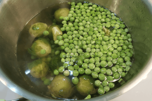 After 3 minutes, add peas to the cabbage and boil for another 4 minutes. Then drain the water.