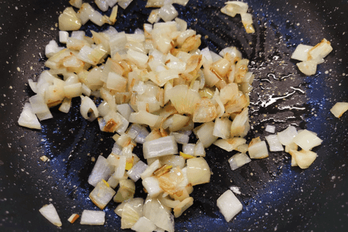 In heated oil, sauté the chopped onion for 2-3 minutes, stirring occasionally.