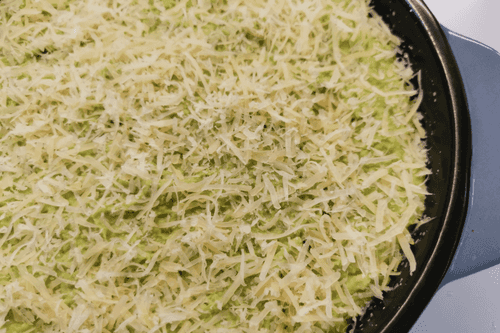 Once the butter in the pot melts, add half of the grated cheese. Then stir and remove from heat.
