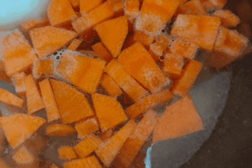 Pour water into a pot, place it on the fire, and add chopped carrots.