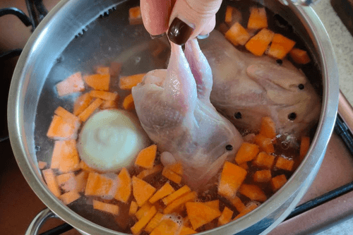 Put the quails in hot water.