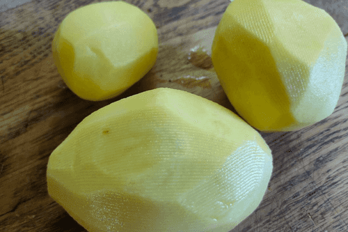 While the quails are boiling, peel the potatoes.