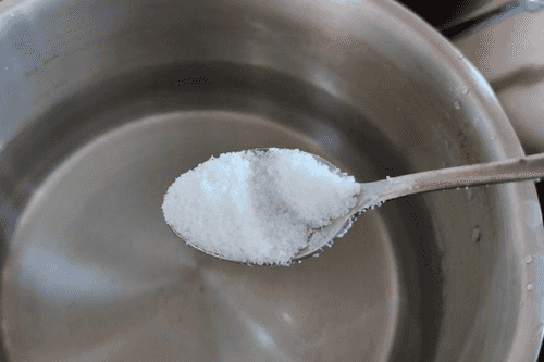 Pour water into a separate pot, add salt, and place it on the fire.