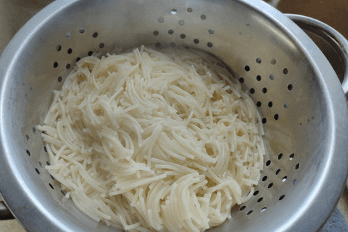 Drain the cooked vermicelli in a colander and rinse with cold water.