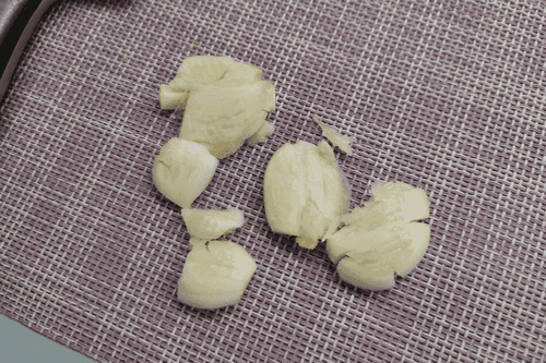 Crush the garlic with a chef's knife.