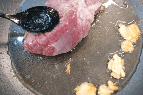 Periodically drizzle the fillet with garlic fat.
