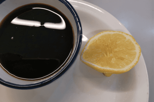 Mix soy sauce with water and add the juice of a small piece of lemon.