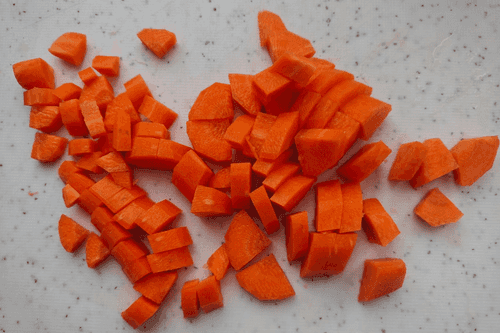 Cut the carrot into cubes.