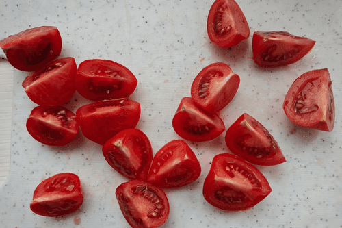 Cut the tomatoes into quarters.
