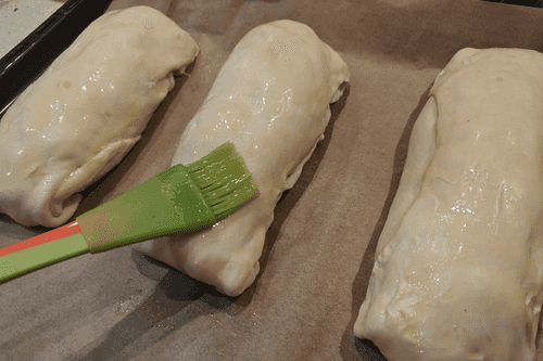 Place the rolls on a baking sheet lined with parchment and brush with egg yolk. Bake for 30-40 minutes in an oven preheated to 200 degrees.