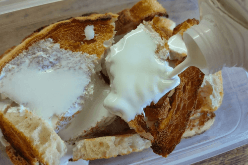 Soak the bread in cream.