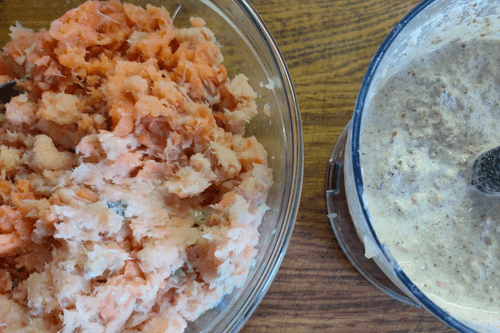 Blend the bread and fish until they reach a puree and minced state.