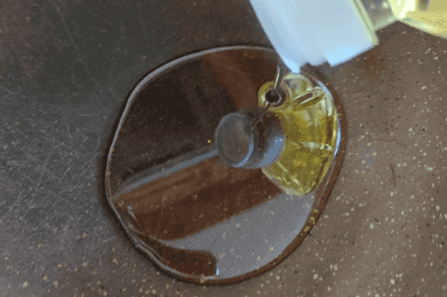 Pour oil into the pan and heat it up.