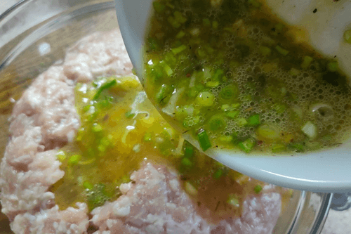 Add the egg mixture to the minced meat and mix.