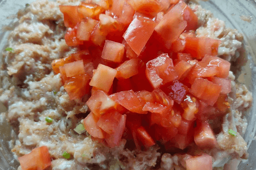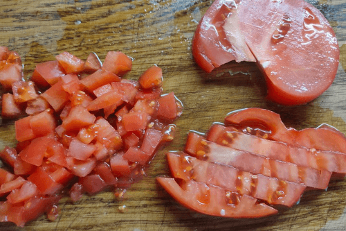 Cut the tomato into cubes.