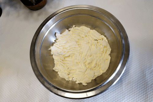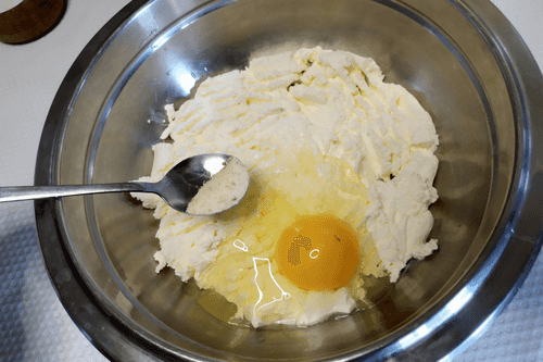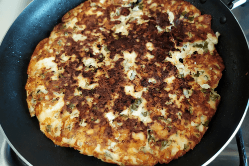 Place the cheese mixture in a heated pan. Fry covered over medium heat until browned on the bottom.