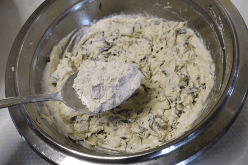 Add finely chopped greens. Mix.