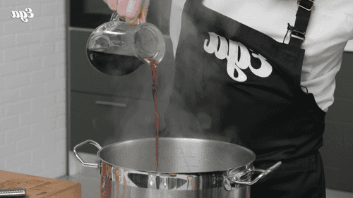 When the onion softens, add 250 ml of wine. Continue to simmer on low heat until the onion is fully softened.