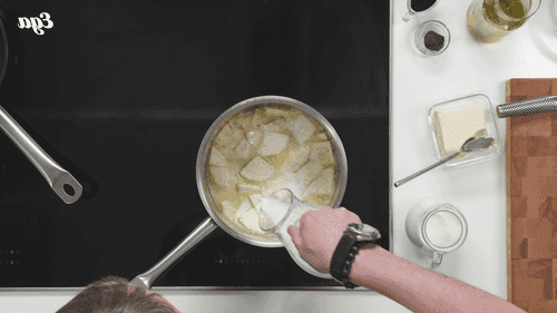 Transfer the celery root to a clean blender bowl using a slotted spoon. Blend until smooth. If needed, add the liquid it was cooked in. Pour in a little cream.