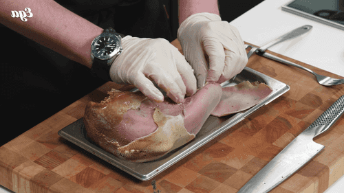 Strain the broth from the tongue. Clean the cooked tongue from the skin while it is hot or warm. A cold tongue will not be cleaned.