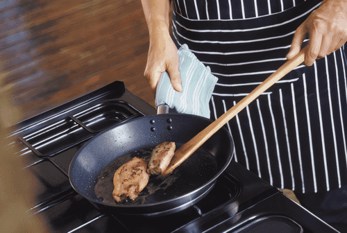Wash the pan and return it to the heat, adding some butter and sauté the finely chopped leek until soft. Remove and keep warm.