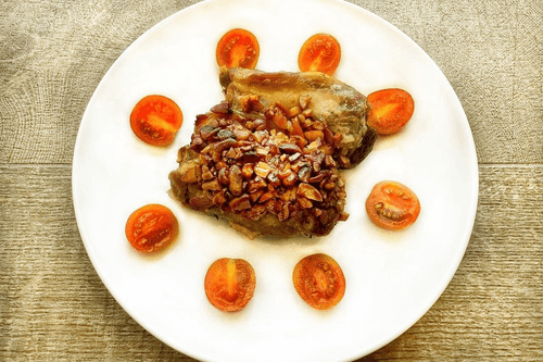 Индейка с орехами кешью и макадамия — это утонченное блюдо русской кухни, сочетающее в себе нежность птицы и хрустящую текстуру орехов. Макадамия и кешью привносят легкую маслянистость и сладковатый оттенок, который гармонично дополняет пикантность сладкого соуса чили. Истоки подобных рецептов восходят к традиции запекания мяса с орехами, которые были популярны среди дворянской кухни России, стремившейся к сочетанию изысканных ингредиентов. Это блюдо идеально подходит для торжественных ужинов или уютных семейных трапез. Благодаря маринованию индейка приобретает насыщенный вкус, а запекание в фольге сохраняет ее сочность. Завершающий штрих — украшение черри, которое добавляет свежесть и яркие акценты. Вкусное и элегантное, оно станет украшением любого стола.