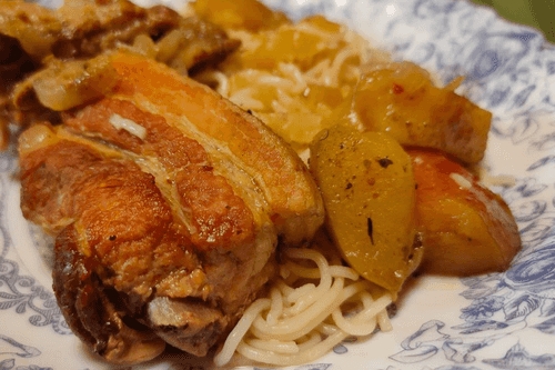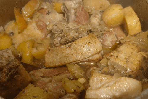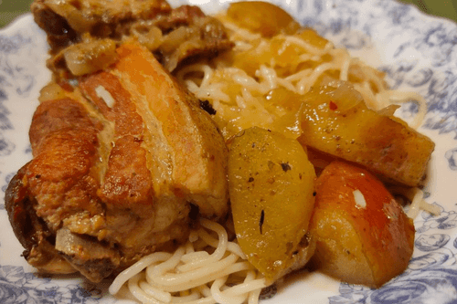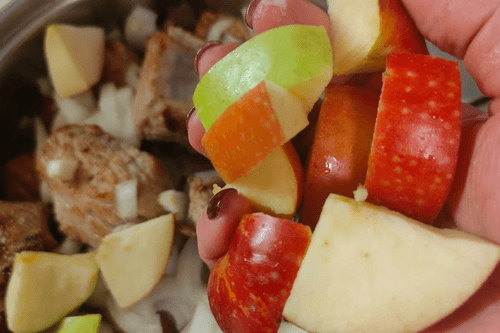 Свиные ребра тушеные с луком и яблоками – это изысканное сочетание сочного мяса, нежности лука и легкой фруктовой кислинки яблок. Этот рецепт пришел из традиционной европейской кухни, где тушение позволяет сохранить мягкость мяса и раскрыть его вкус. Сочетание ароматных специй, лаврового листа и перца делает блюдо насыщенным и глубоким. Яблоки придают пикантную сладость, которая уравновешивает мясную основу. Такое блюдо идеально сочетается с гарниром из картофеля или овощей, создавая сытный и комфортный ужин. Благодаря медленному тушению, ребра пропитываются всеми ароматами, становясь невероятно мягкими и насыщенными. Оно идеально подходит для семейного ужина или уютного застолья, наполняя дом теплом и аппетитными ароматами.
