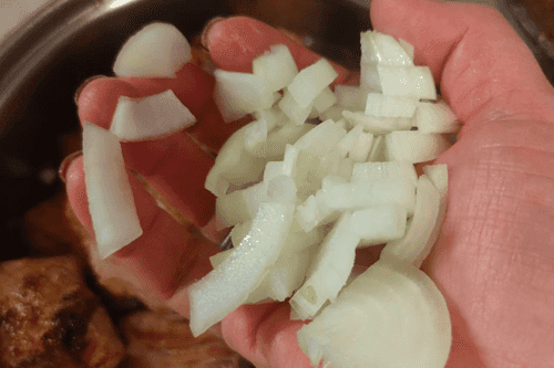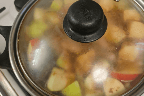 Pour in water just enough to cover almost to the top the contents of the pot.