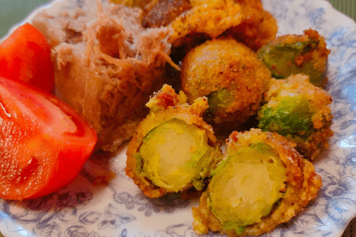 Breaded roasted Brussels sprouts are an elegant and crispy dish that harmoniously combines the tender texture of the sprouts with a fragrant golden crust. This recipe has roots in European cuisine, where Brussels sprouts are valued for their savory flavor and health benefits. The breading with aromatic herbs adds sophistication, while the frying process reveals the natural sweetness of the sprouts. The result is a delicious dish with a crunchy exterior and soft interior, perfect as a side to meat or as a standalone snack. This treat pairs especially well with fresh sauces that add lightness and balance to the flavor. A great choice for gourmets looking to try something unusual and delightfully tasty!