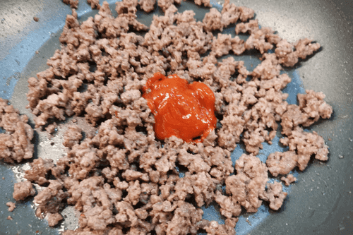 After another 2-3 minutes, add chili sauce. Stir and fry for about 5 more minutes.