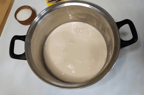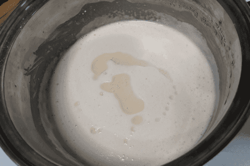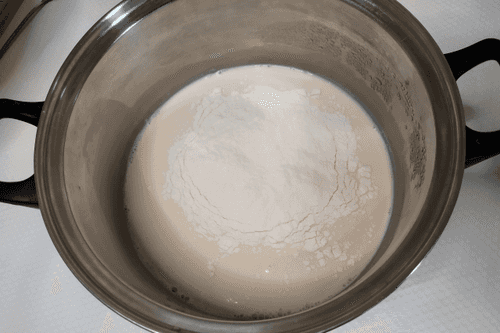 Beat the eggs with 1 tablespoon of sugar and a pinch of salt. Pour in the milk and mix.