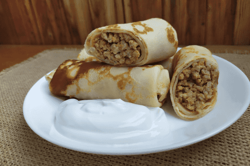 Блинчики с мясом — это настоящая классика русской кухни, пропитанная уютом домашнего очага. Их история восходит к традициям древних славян, когда блины символизировали солнце, а мясная начинка придавала блюду сытность и питательность. Тонкие, нежные блины, пропитанные молочной мягкостью, обволакивают сочную мясную начинку с ароматным луком и специями. Вкус блюда — гармония воздушности теста и насыщенной мясной начинки, особенно в сочетании со сметаной, придающей приятную кислинку. Блинчики можно подавать как самостоятельное блюдо или дополнение к праздничному столу. Их удобно брать с собой и наслаждаться в любом месте. Это блюдо объединяет поколения, сохраняя тепло семейных традиций.