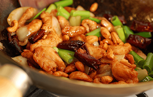 Fried chicken with cashews and vegetables