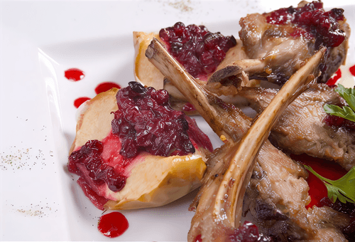 Lamb ribs with cranberry chutney and cranberry-wine sauce